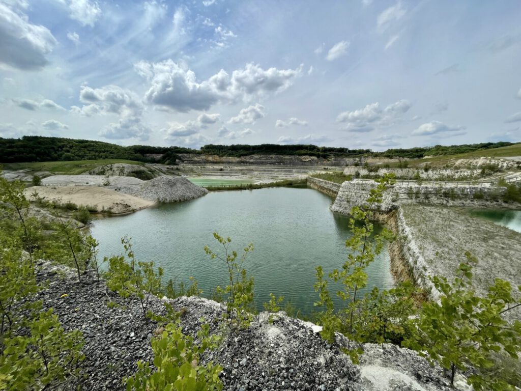 Hierna lopen we verder en komen we bij uit bij het uitzichtplatform dat een geweldig uitzicht geeft over de hele groeve.